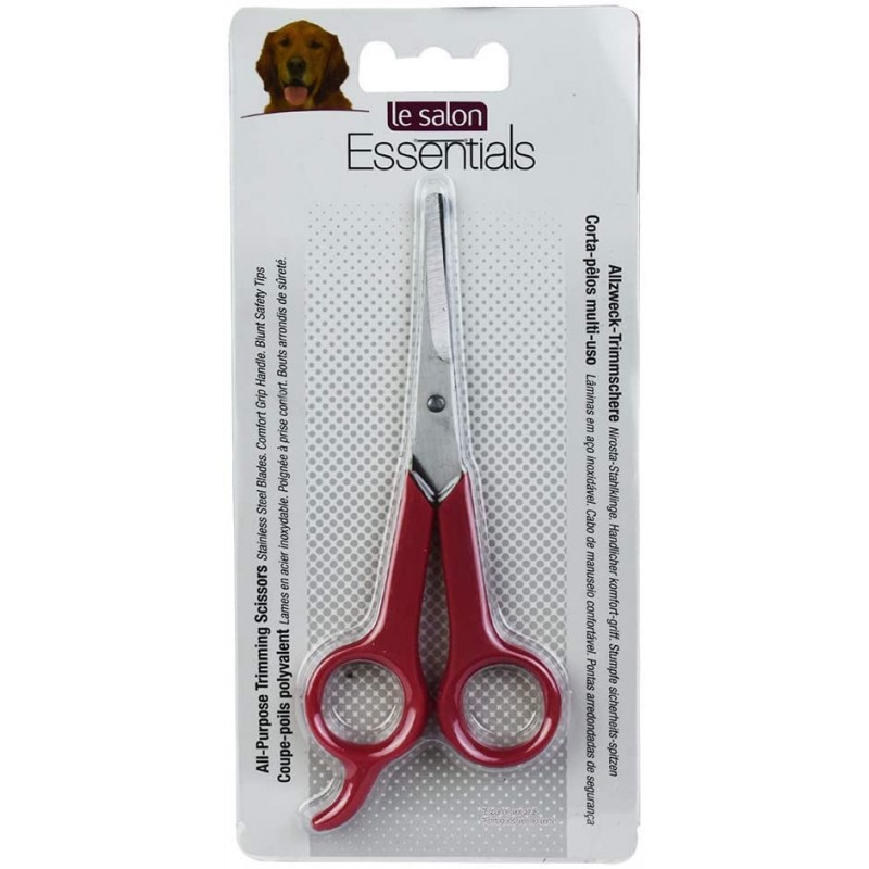 Tijeras de corte multiusos para perros Le Salon, tijeras de acero inoxidable con mango rojo y puntas de seguridad sin filo.