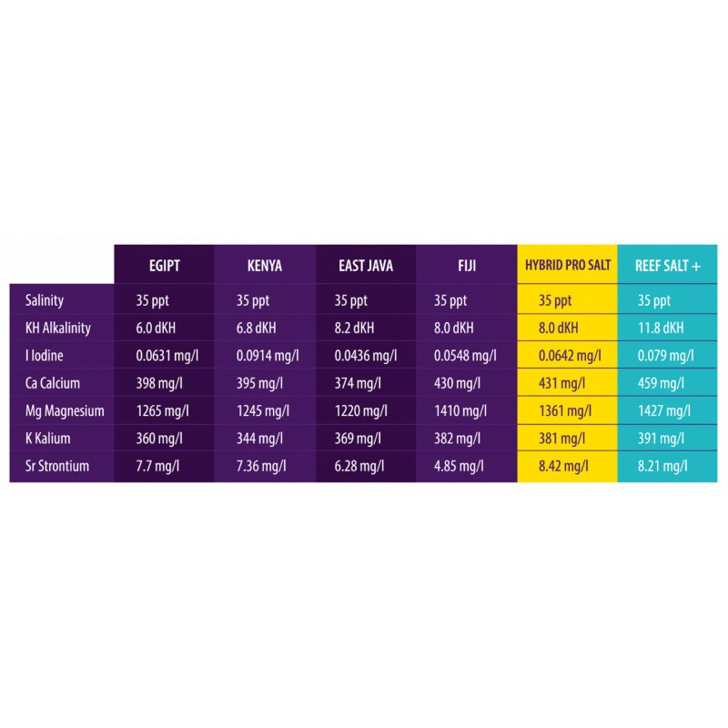 Esta nueva fórmula Hybrid Salt crea condiciones casi idénticas a las que se encuentran en el agua de mar natural y tiene el beneficio adicional de los probióticos para ayudar a mantener el equilibrio microbiológico y reduce de manera segura los niveles de nitrato y fosfato.