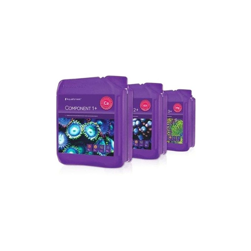 La composición química de Component 1+2+3+ está basada en el método desarrollado por H. Balling. La formula ha sido ajustada en nuestro laboratorio y enriquecida con elementos traza, que son fundamentales para mantener en buena forma, los organismos del acuario marino.