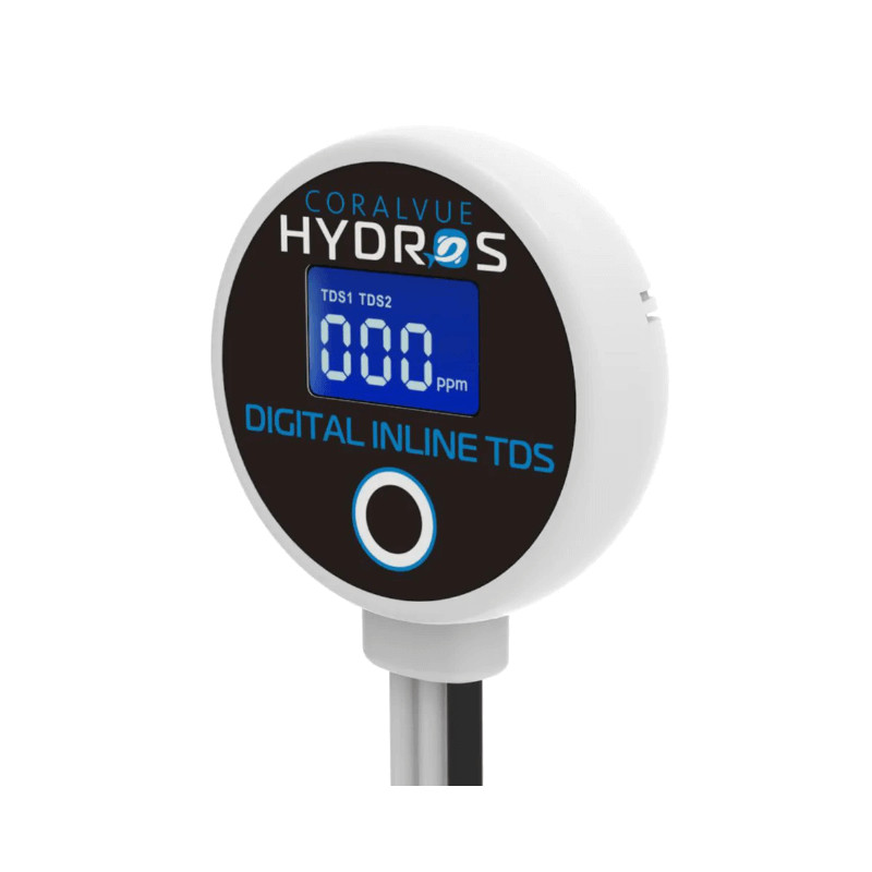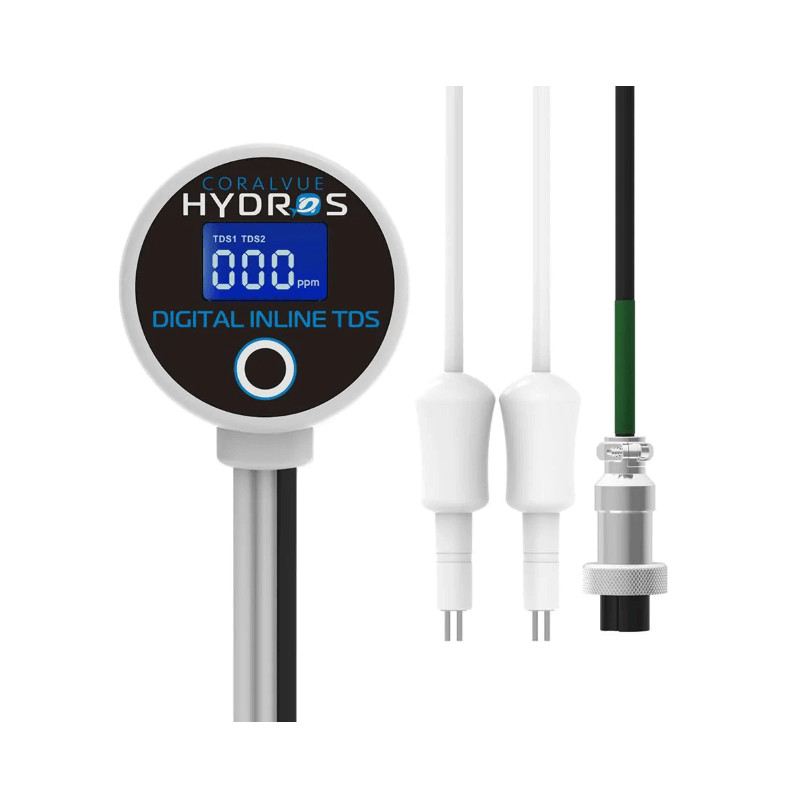 El medidor digital de TDS en línea HYDROS cuenta con dos sensores para monitorear la calidad del agua de cualquier sistema de ósmosis inversa/dilución (RO/DI). Los sensores de titanio, resistentes a la corrosión, proporcionarán lecturas sin problemas durante años.