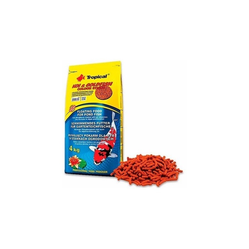 Tropical Koi & Goldfish Colour Sticks 4kg, alimentos que realzan el color para peces de estanque.