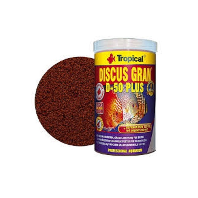 Tropical Discus Gran D-50 Plus es un alimento potenciador del color en forma de gránulos hundibles con alto (50%) contenido de proteína para discos jóvenes y adultos y otros peces, particularmente las especies más exigentes. Su característica más destacada es su alto contenido de proteína de gran calidad, rica en aminoácidos esenciales. Asegura un crecimiento y desarrollo sanos de los peces jóvenes y anima al desove y la reproducción. Su alto contenido de astaxantίn natural intensifica la coloración y mejora la condición física completa del pez. El betaglucano refuerza el sistema inmunológico y aumenta la habilidad para luchar contra los patógenos. Una alimentación regular con Tropical Discus Gran D-50 Plus asegura un crecimiento y desarrollo sanos de los peces, aumentando su resistencia a las enfermedades, animándolos a desovar e intensificando su coloración.