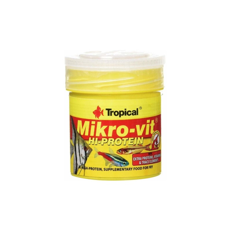 MIKROVIT HI-PROTEIN un alimento de proteínas para los alevines con yemas. Alimento de proteínas para los alevines – desagregado al máximo para que los peces pequeños puedan recogerlo con facilidad. Una fórmula muy rica, entre otros un nivel alto de proteínas de fácil digestión, las yemas de huevos muy ricos en sustancias nutritivas y krill, muy sabroso y rico en carotenoidos, cubren las altísimas necesidades alimentarias de los peces jóvenes, estimulando su crecimiento y desarrollo. Una serie de vitaminas y microelementos seleccionados de manera óptima garantiza una condición perfecta y salud, previniendo los incambiables efectos de las faltas de estas sustancias, por ejemplo el raquitismo. Con objetivo de la variación máxima de la dieta de los alevines recomendamos que Mikrovit Hi-Protein se utilice junto con otros alimentos de la serie Mikrovit y larvas vivas obtenidas de quistes Artemia salina de la marca Tropical. Prueba también: Mikrovit Basic