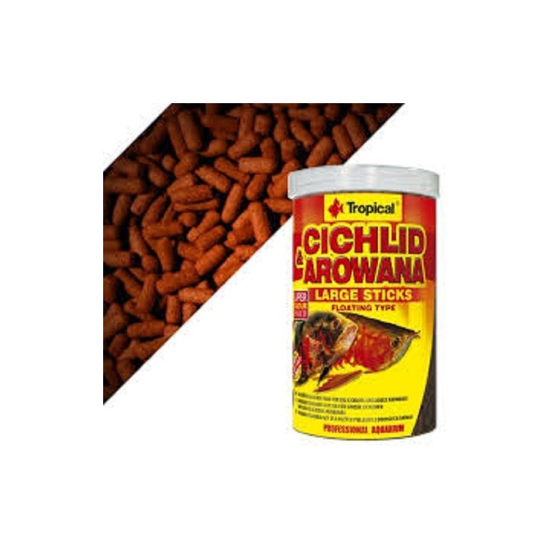 Alimento exclusivo para AROWANAS Y grandes CICLIDOS. Disponible en sticks flotantes en tamaño medio y grande.