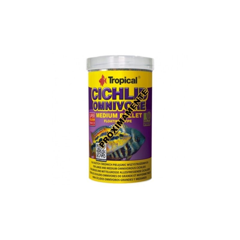 CICHLID OMNIVORE MEDIUM PELLET Alimento multi-ingrediente con astaxantín y spirulina para la alimentación diaria de cíclidos omnívoros grandes y medianos, e.g.: Archocenstrus sajica, Aequidens rivulatus, Heros severus. Los gránulos flotantes se elaboran con la tecnología HTST, gracias a la cual son excepcionalmente asimilables, biológicamente seguros y no se desintegran en el agua. Su rica fórmula satisface todas las demandas nuticionales de los peces omnívoros. Su alto contenido en fibra regula los procesos digestivos y los caratenoides realzan la coloración.