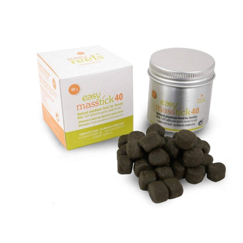 Easymasstick está formulado como una pasta autoadhesiva lista para ser utilizada en cualquier punto del acuario según sean los hábitos de alimentación de los peces a los que va destinado. Easymasstick es una mezcla de diversos compuestos totalmente naturales de producción propia, altamente tecnificados y destinados a la alimentación equilibrada y natural de peces omnívoros e invertebrados marinos. Easymasstick está compuesto por materias de origen marino. No contiene atractantes, conservantes artificiales, o productos de síntesis. Conservación. Almacenar Easymasstick en un lugar oscuro, seco y fresco. La temperatura de almacenaje no debe ser superior a 25°C. En verano, si las temperaturas son superiores se recomienda almacenarlo en una habitación climatizada. Composicion: Invertebrados acuáticos (Palaemonetes varians), microalgas (Nannochloropsis, Isochrysis, Tetraselmis, Phaeodactylum), y macroalgas (Ulva, Chondrus). Como efecto secundario, provoca un incremento de la microfauna en los acuarios de los invertebrados (sobre todo zooplancton y pequeños plumeros) que al final son el alimento de muchos corales y peces. El fitoplancton marino es un alimento muy completo ya que contiene vitaminas, ácidos grasos esenciales, amino ácidos, carbohidratos y proteínas necesarios para el desarrollo de los distintos organismos de los acuarios. Masstick® es 100 % fitoplancton marino liofilizado y crustáceos, obteniéndose así de este producto todas las ventajas de las de las micro algas de una forma fácil. Con Masstick® podrá obtener excelentes resultados en su acuario marino. Ideal para la alimentación de peces complicados con problemas específicos de alimentación como los Zanclus, Synchiropus o Chelmon.