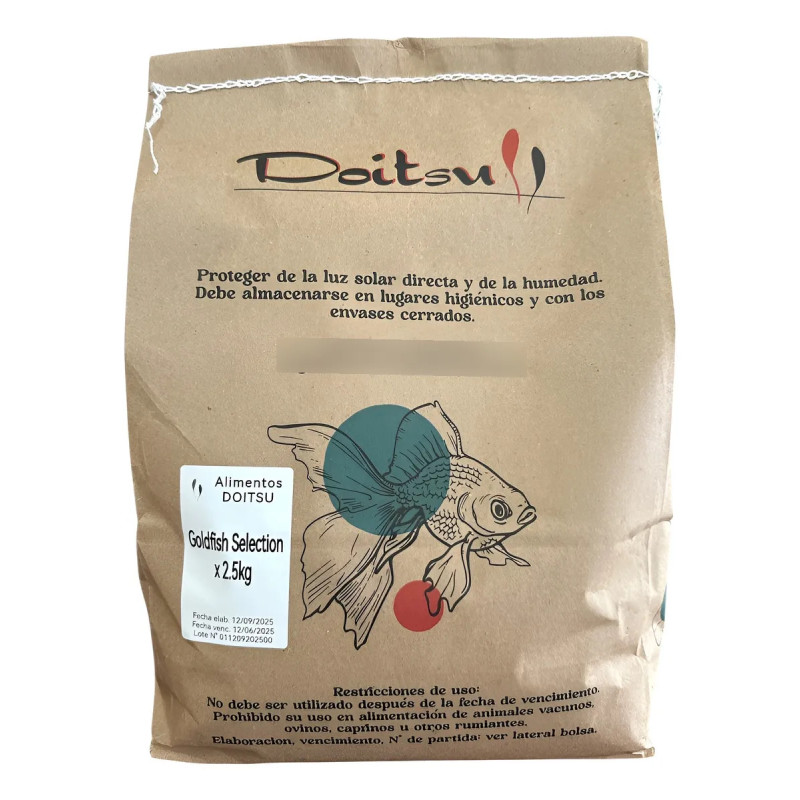 Doitsu Goldfish Selection Alimento granulado de flote, de uso diario * Por su completa y enriquecida composición es un alimento premium para variedades exigentes. * Resalta de manera natural el color y mejora la defensas en los peces logrando una óptima salud y vitalidad. * Rico en vitaminas C y E, con alta digestibilidad, ideal para carassius selectos. * Es utilizado para alimentar a juveniles de koi de hasta 10cm de tamaño total. Análisis nutricional * Proteína 35% * Fibra 4% * Minerales totales 9% * Energía digestible 2950 Kcal/kg