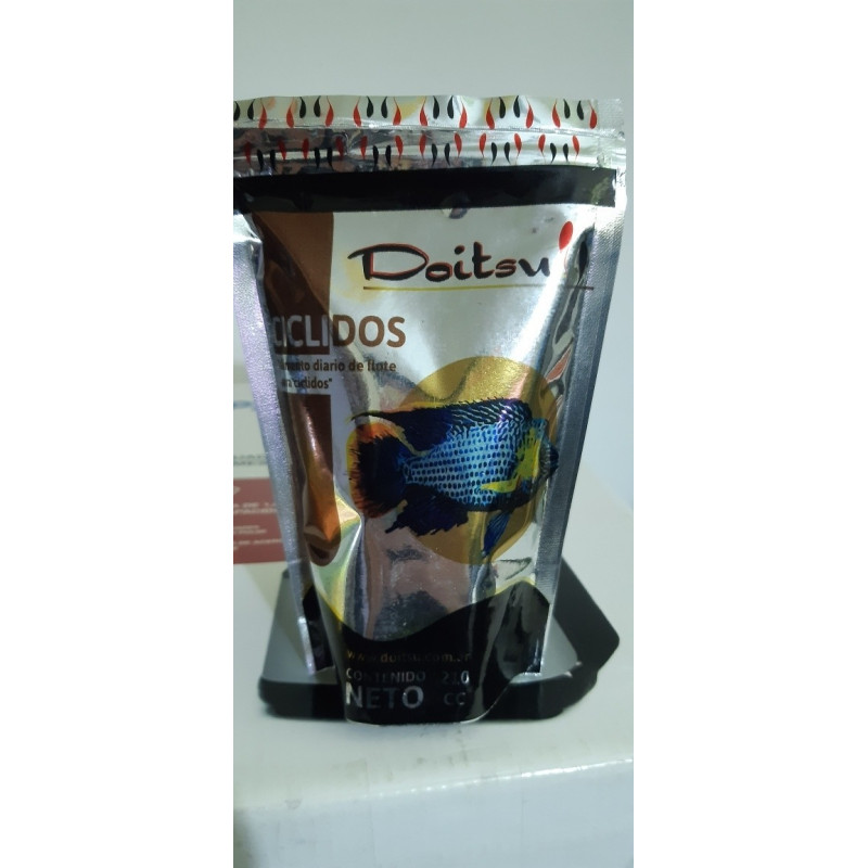Doitsu Cíclidos no posee colorantes ni saborizantes artificiales. Rico en vitaminas C y E, con alta digestibilidad. Por su completa y enriquecida composición es un alimento de uso diario para todos los cíclidos americanos.