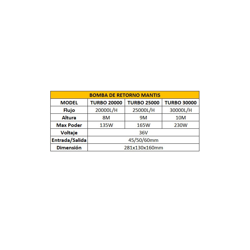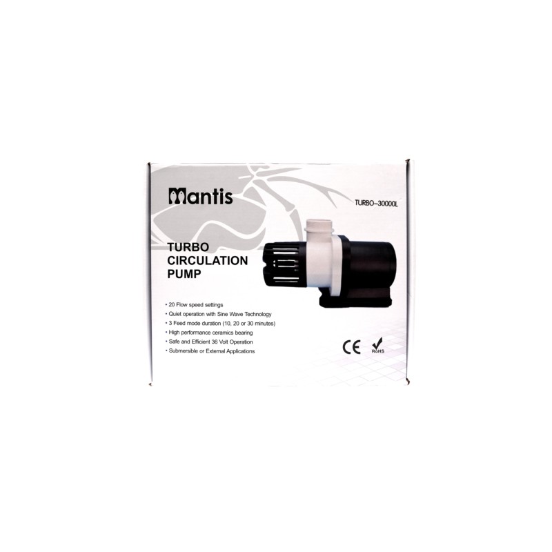 La bomba de retorno Mantis TURBO 25000 es un accesorio de alta calidad y rendimiento diseñado para mantener un flujo constante de agua en tu acuario. Con una capacidad de 25,000 l/h, esta bomba garantiza una circulación eficiente y una oxigenación adecuada para tus peces y corales.