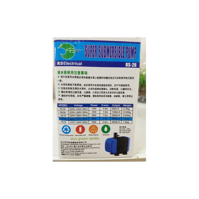 Bomba de Agua sumergible 50 w 3000 l/hora 2 mts alturaIdeal para estanques y cascadasMODELO RS 28
