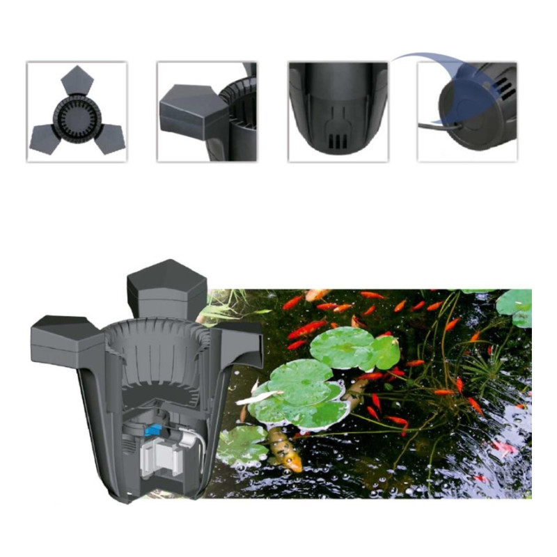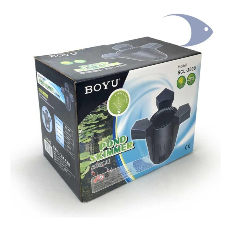 BOYU SKIMMER ESTANQUE SCL-2500 FLOTANTE ELIMINA SUCIEDAD Desnatadores para estanques BOYU SCL ofrecen una solución innovadora para eliminar de forma permanentemente la suciedad que se acumula en la superficie de los estanques. Usan una potente y silenciosa bomba que aspira la superficie del agua, creando un vórtice descendente para incrementar su radio de acción. Contiene una esponja filtrante de poro abierto que retiene la suciedad antes de que el flujo de agua sea impulsando hacia el fondo del estanque. Este flujo descendente desplaza el agua hacia el área de aspiración del filtro de su estanque aumentando así su eficiencia. El skimmer de estanque Boyu SCL-2500 es un dispositivo eléctrico. Utiliza una bomba integrada que funciona con una fuente de alimentación de CA de 220-240V y 50Hz para aspirar el agua de la superficie del estanque y filtrar los residuos. El producto incluye un cable para conectarlo a la corriente eléctrica de aproximadamente unos 10 metros de largo. También disminuye el exceso de temperatura que se produce en las capas superficiales del agua debido a la radiación solar. Con ello mejora notablemente la tasa de oxígeno disuelto y frena la propagación incontrolada de las algas propia de la época estival. Sin importar si el nivel de agua disminuye o aumenta en su estanque, los Desnatadores para estanques BOYU SCL siempre quedarán ubicados en la altura óptima sobre la superficie del agua, gracias a sus tres flotadores que estabilizarán su funcionamiento de forma constante y sin la necesidad de nuestra intervención.