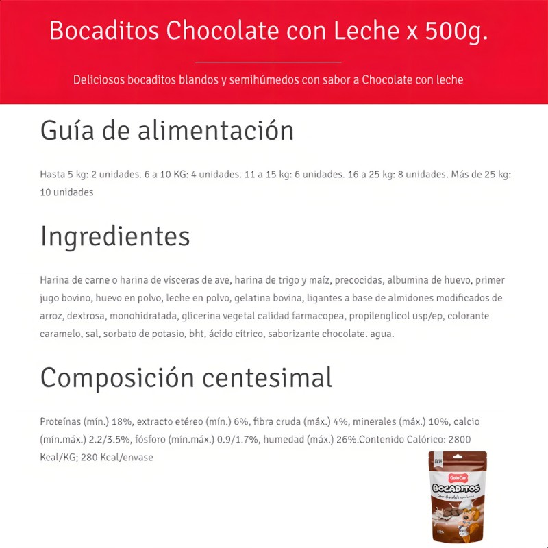 Consiente a tu mascota con los deliciosos Bocaditos para Perro de Chocolate con Leche de Golocan. Estos snacks húmedos de 500 gramos están especialmente diseñados para perros, ofreciendo una experiencia de sabor única y apetitosa. Cada envase contiene 22 unidades de bocaditos, perfectos para premiar a tu amigo peludo en cualquier momento del día. La línea Snack de Golocan se destaca por su calidad y sabor, y estos bocaditos no son la excepción. Además de ser irresistibles para tu mascota, también aportan vitaminas esenciales para su bienestar y salud. No esperes más para sorprender a tu perro con estos exquisitos Bocaditos de Chocolate con Leche de Golocan y fortalecer el vínculo con tu compañero de cuatro patas.