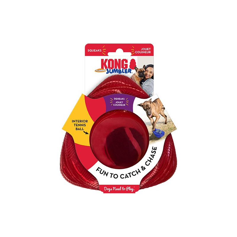 La pelota de tenis interior rodante de KONG Jumbler Flinger y su fuerte chirrido provocan la diversión de tirar y buscar con un juguete aerodinámico con un gran rebote que lanza a los perros a toneladas de diversión activa y saludable. Este Jumbler duradero está diseñado para durar sesiones de juego difíciles con una forma eso hace que tirar, sacudir y arrojar sea fácil para rondas duraderas de juego interactivo. Juego de chispas con bola giratoria interna y chirriador. La forma aerodinámica y el gran rebote promueven el juego activo. Ideal para diversión interactiva de tirar y buscar Juguete duradero para una acción duradera Un fuerte chirrido mantiene el juego emocionante.