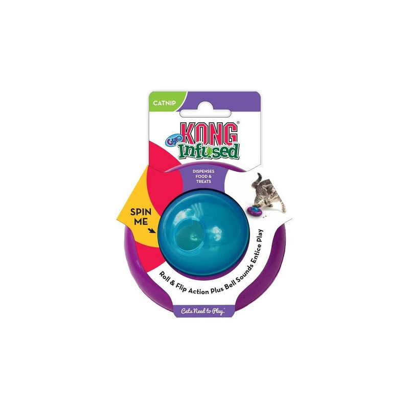 El KONG Cat Gyro es el dispensador ideal de alimento y premios que tiene una función de toque y giro que entretiene a los gatos en un acertijo delicioso que estimula la mente. Al golpearlo, se voltea para despertar los instintos de acecho y ataque de los gatos. Impregnado con aceite de hierba gatera de alta calidad, también tiene una campana en el anillo exterior que se combina para sesiones de juego extendidas. El contenedor removible del medio es fácil de llenar y limpiar. Tiene capacidad para 1/3 de taza de alimento, convirtiéndolo en un reemplazo ideal para el plato.
