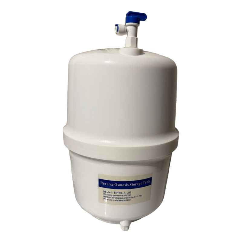 Este tanque es ideal para sistemas de ósmosis inversa de bajo caudal. Actúa como reservorio de agua. Contiene gas ecológico que mantiene presurizada la bolsa (membrana) interna generando así un contra flujo de agua fresca hacia la salida (canilla o análogos). El gas ecológico al ser presurizado, baja su temperatura, logrando que el agua salga fresca, a una temperatura muy agradable (no fría). Ideal para equipos de ósmosis inversa