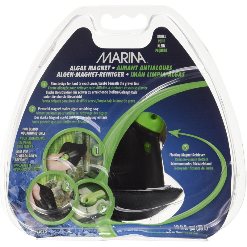 El imán para algas Marina Deluxe le permite limpiar el interior del cristal del acuario sin mojarse las manos. Su diseño delgado es ideal para zonas de difícil acceso. Su gran almohadilla de fregado interna le permite ver fácilmente lo que está limpiando, brindándole un control total. Los potentes imanes garantizan un agarre firme y las almohadillas de limpieza no abrasivas no rayan la superficie del cristal. Incluye un recuperador de imanes flotante especialmente diseñado. Solo para acuarios de cristal. Apto para acuarios de agua dulce y salada.