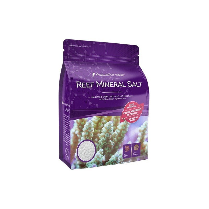 Un agente para mantener niveles constantes de minerales en acuarios de arrecife. El uso de Reef Mineral Salt es uno de los elementos más importantes durante la suplementación de cloruro de calcio y bicarbonato de sodio (es decir, método de Balling). La falta de suplementos minerales de Reef Mineral conduce a deficiencias de minerales peligrosos. La escasez a largo plazo de micro y macronutrientes resulta con una desaceleración excesiva del crecimiento y una coloración pálida de los corales.