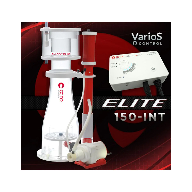 El Elite 150int está equipado con una bomba de rueda dentada Reef Octopus VarioS-2S de velocidad variable con controlador de memoria integrado. Este skimmer cuenta con un exclusivo depósito de recolección giratorio que facilita su extracción y limpieza, una válvula de cuña ventilada fácil de usar que proporciona un control preciso y un desagüe subacuático para un funcionamiento silencioso.