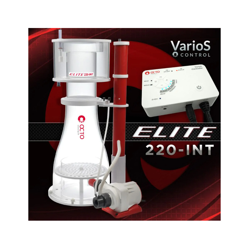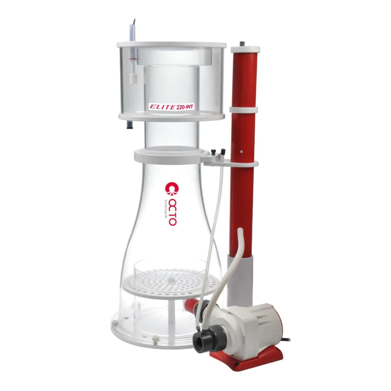 El Elite 220int está equipado con una bomba de rueda dentada controlable Reef Octopus VarioS-6S con controlador de memoria integrado. Este skimmer cuenta con un exclusivo depósito de recolección giratorio que facilita su extracción y limpieza, una válvula de cuña ventilada fácil de usar que proporciona un control preciso y un desagüe subacuático para un funcionamiento silencioso.