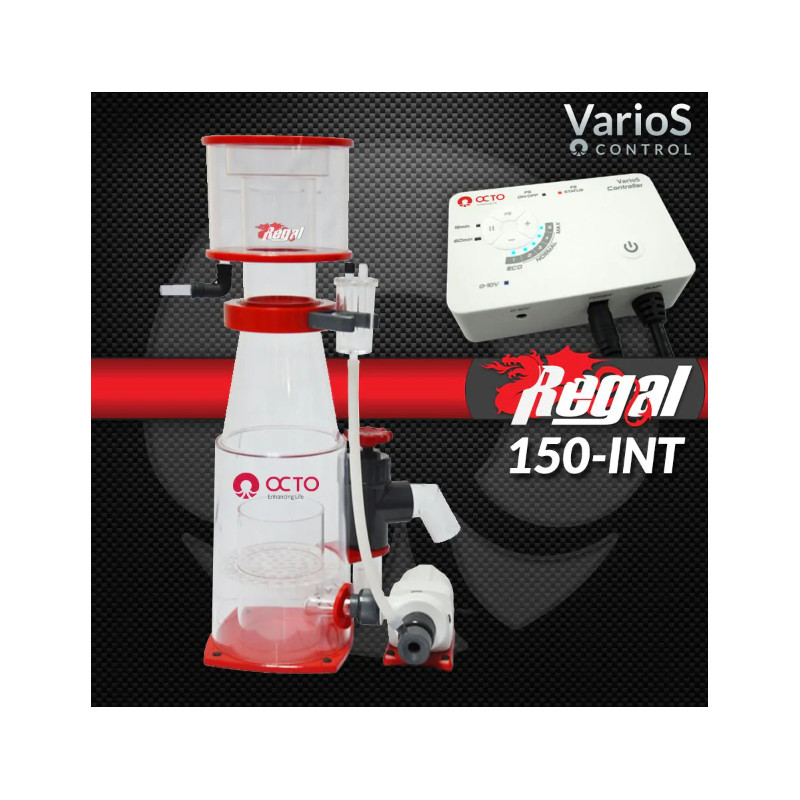 El nuevo e innovador skimmer de proteínas para sumidero Reef Octopus Regal 150-INT proporciona una potente filtración para acuarios de hasta 211 galones, con espacio ilimitado en el sumidero. El Reef Octopus Regal 150-INT está fabricado con acrílico fundido de alta calidad y se desmonta completamente para su limpieza. Su cuerpo cónico híbrido estabiliza y concentra naturalmente la espuma rica en compuestos orgánicos a medida que asciende.