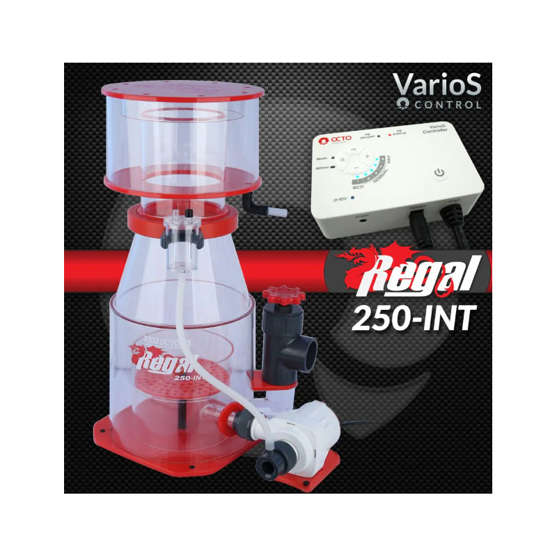 El nuevo e innovador skimmer de proteínas Reef Octopus Regal 250-INT, para instalación en el sumidero, proporciona una potente filtración para acuarios de hasta 300 galones, con espacio ilimitado en el sumidero. El Reef Octopus Regal 250-INT está fabricado en acrílico fundido de alta calidad y se desmonta completamente para su limpieza. Su cuerpo cónico híbrido estabiliza y concentra de forma natural la espuma rica en materia orgánica a medida que asciende.