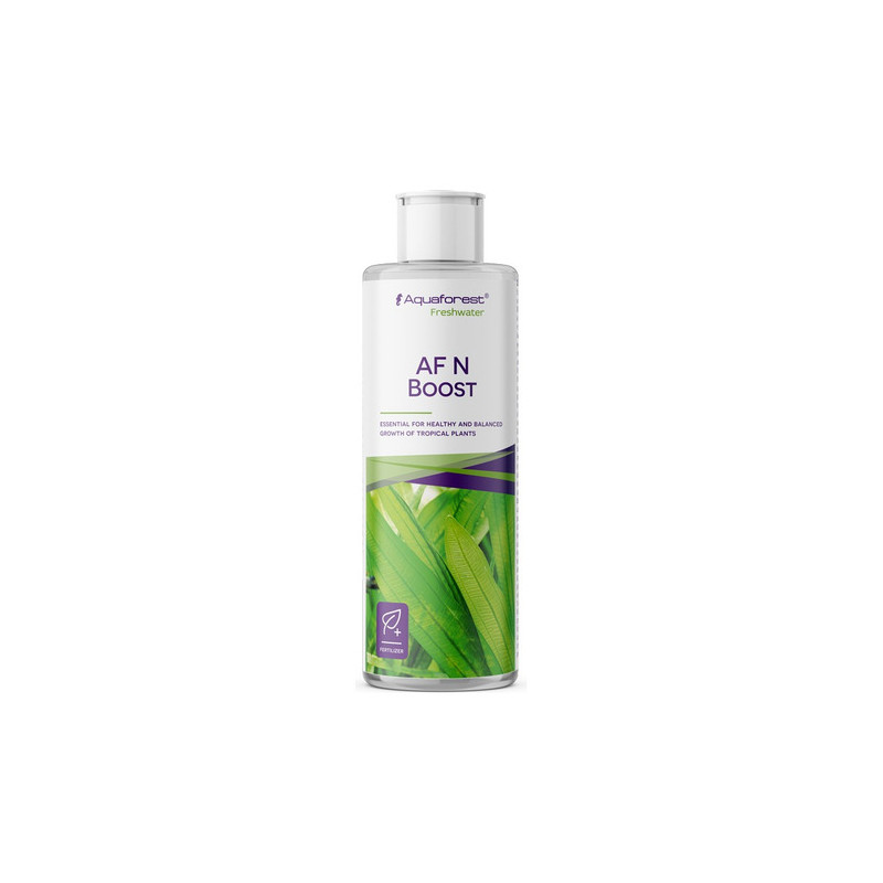 Fertilizante nitrogenado profesional de fácil absorción para plantas acuáticas. El nitrógeno es uno de los macronutrientes más importantes necesarios para las plantas. La presencia de nitrógeno influye en el crecimiento de la planta, su propagación y la coloración verde de las hojas. La suplementación adecuada de nitrógeno es esencial ya que tanto la deficiencia como el exceso pueden ser perjudiciales para las plantas. La deficiencia de nitrógeno provoca inhibición del crecimiento, clorosis y coloración amarillenta de las hojas, además de un mayor oscurecimiento. El exceso, en cambio, se manifiesta por un crecimiento excesivo, hojas de color verde oscuro, mientras que la planta es muy delicada y menos resistente a los daños mecánicos. El nivel adecuado de nitrato en el acuario de plantas debe ser de 10 a 20 mg/l. Las plantas absorben el nitrógeno principalmente en forma de nitrato y amonio. AF N Boost contiene formas de nitrógeno mineral que son bien absorbidas por las plantas acuáticas.
