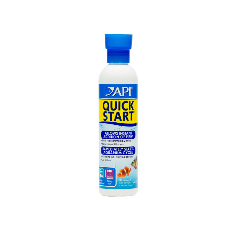 Las bacterias nitrificantes API® QUICK START permiten la adición instantánea de peces, ya que inician inmediatamente el ciclo natural del acuario con bacterias beneficiosas que convierten el amoníaco tóxico en nitrito y, posteriormente, en nitrato inocuo para ayudar a prevenir la pérdida de peces en el acuario. Ideales para usar al iniciar un nuevo acuario, después de cambios de agua y filtros, y al añadir nuevos peces a un acuario existente. Las bacterias nitrificantes API QUICK START pueden usarse tanto en acuarios de agua dulce como salada.